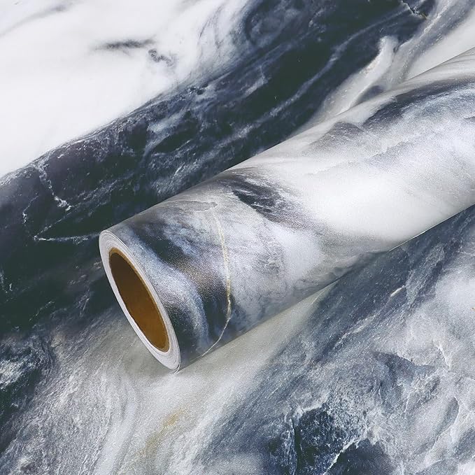 Vinyl of superior quality Navy blue in color. 15.7″ (Width) x 118″ (Length) What’s in the box: A handbook and a roll of marble contact paper Backsplash, countertop, cabinet, table, drawer, smooth wall, cabinet, glass window, dresser, bookcase, laptop, crafts, doors, and any other diy project’s waterproof and moisture-proof, so it’ll keep your furniture dry. Gridlines are printed on the backside for accurate cutting. Self-adhesive without the need for additional chemical glue. it’s simple to clean up and wipe away the mess.